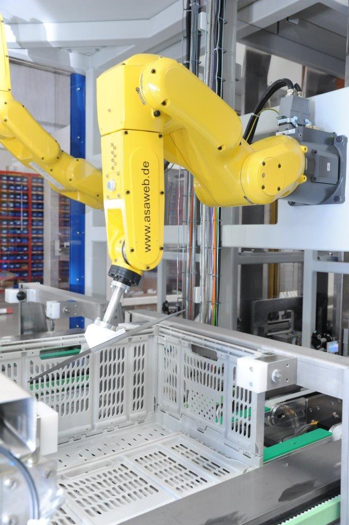 Auch wenn es keinen Primary Food Kontakt gibt, sind zur Vereinfachung der Reinigung wesentliche Teile der Roboterzelle in Edelstahl ausgeführt.